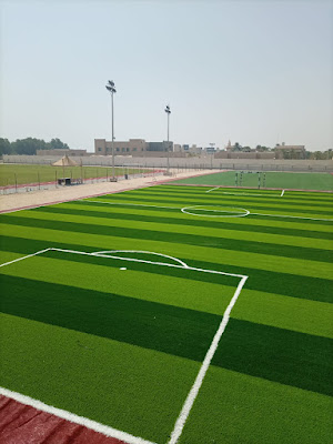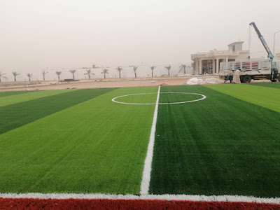 إضافة حبيبات المطاط (Rubber) والرمل السيليكا لزيادة مرونة الملعب، مع تأسيس نظام تصريف مياه أمطار تحت العشب.